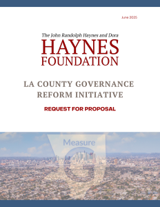 In anticipation of this chance for better governance and wider democracy, the board of directors of the Haynes Foundation has determined to marshal considerable financial and civic resources to county governance. Through this RFP, we ask for your participation in developing focused, impactful projects and proposals.
